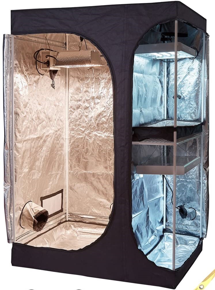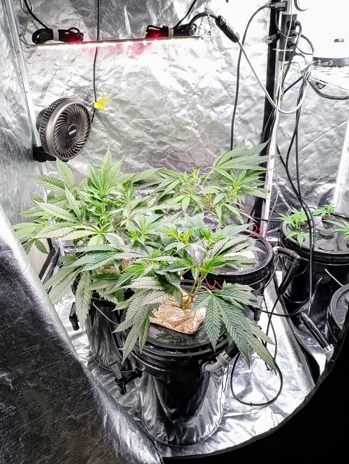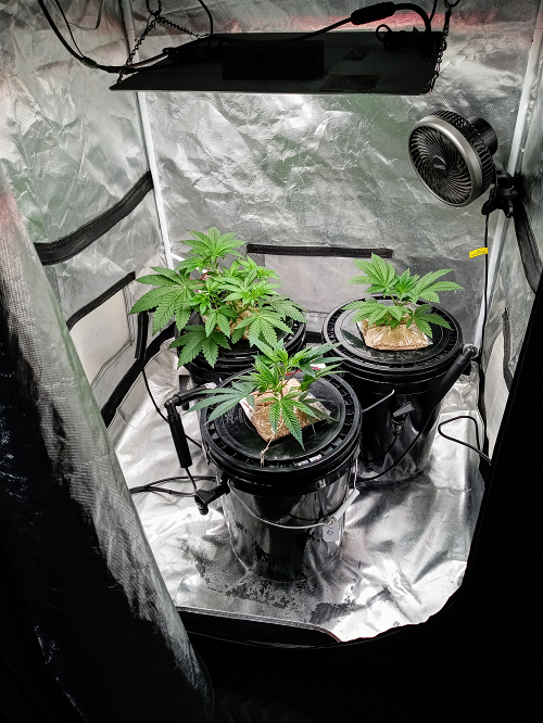 There are many advantages to growing hydroponically using grow tents, mainly it allows more control over the entire process. On the down side it is expensive to set up and does require daily maintenance. I use three grow tents, one is 3′ x 4′ x 6′ with three DWC buckets and a 2’x2’x4′ with the aeroponic buckets for starting clones. The other is 3′ x 3′ x 6′ has three DWC buckets. These grow tents come in a wide variety of sizes to fit almost any growers needs.