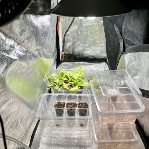I use a hydroponic system generally referred to as Deep Water Culture. Clones and new seeds are grown using a simple low pressure aeroponic system. Under intense light with highly oxygenated solution supplying ample nutrients these plants grow very fast.