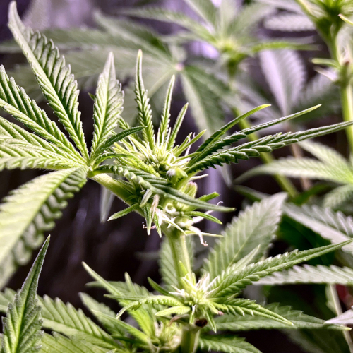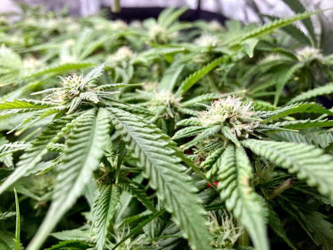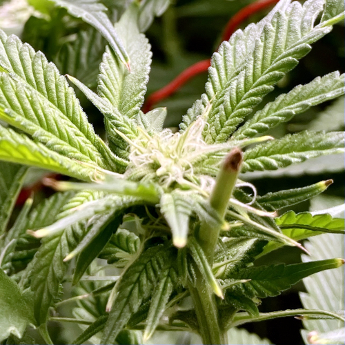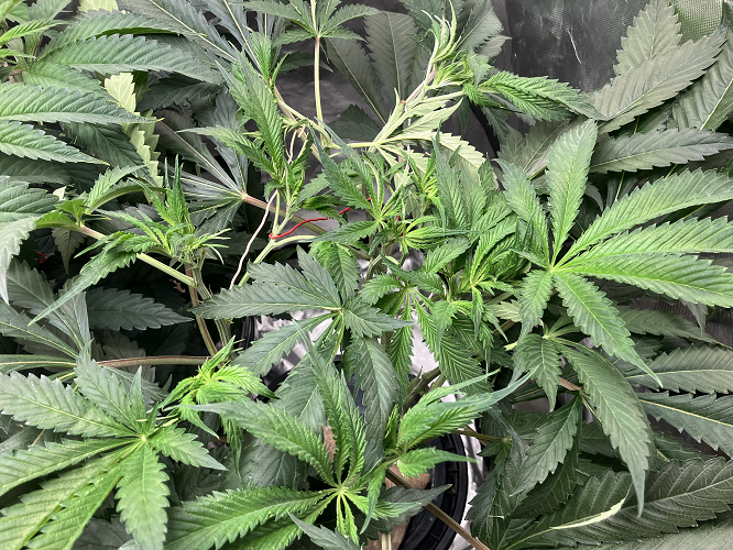 Still trimming fan leaves and removing small stems to keep light on lower flowers.