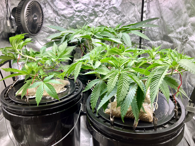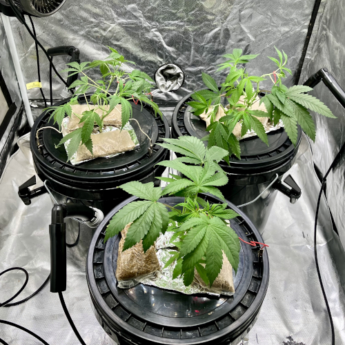 All three plants doing great. GGB is on a brick, still behind from slow root development at first. Raising the amount of solution next week to 25mlx, GT3 fan leaves showing some sign of low Magnesium / calcium.