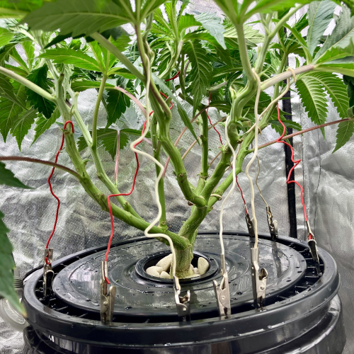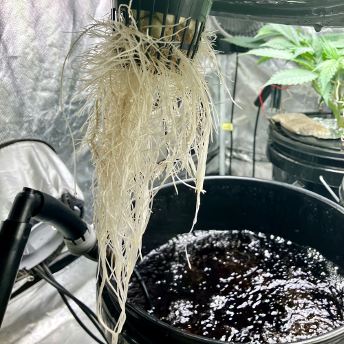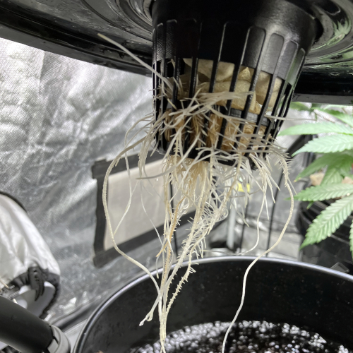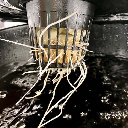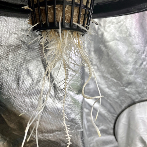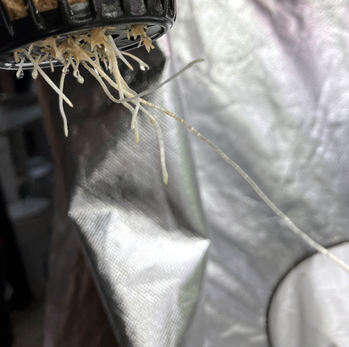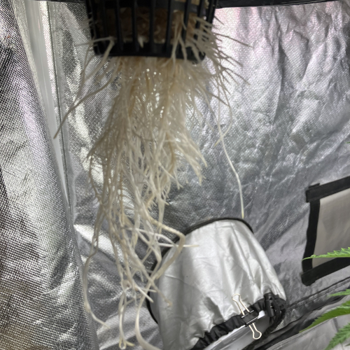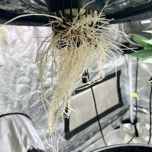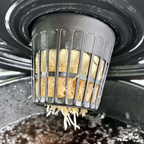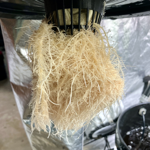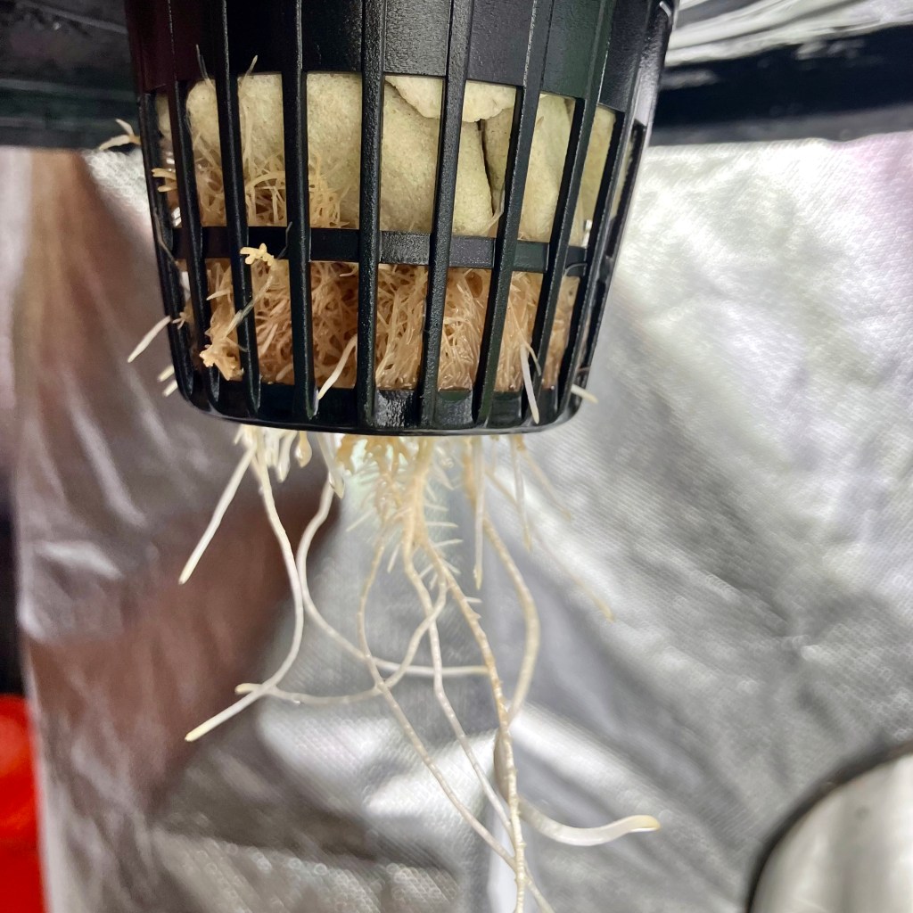 GG A roots, vigorous growth in first week. All 3 had about the same root development when put in the net pots. The GGA roots where shorter and didn’t need to be bent. The other two had longer roots that I bent in half to get into the pot. Need to check root development on next cycle when I will cut the roots to about 3.5 to 4 inches long.