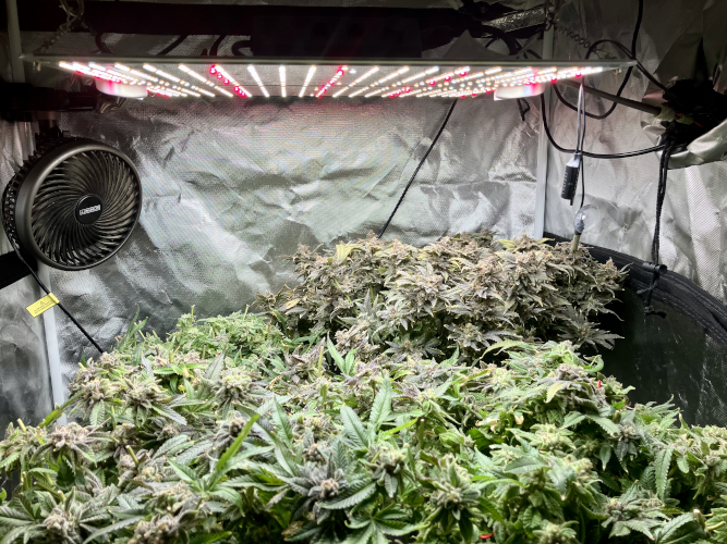 These should be ready to flower next week, they have been in the tent for 5 weeks, 3 days. Up to 28 inches high on the GT3.
