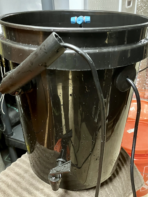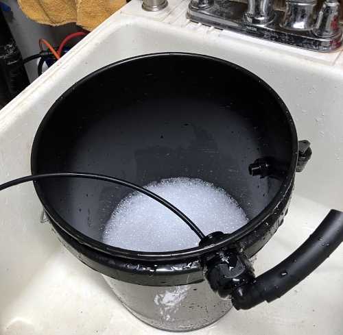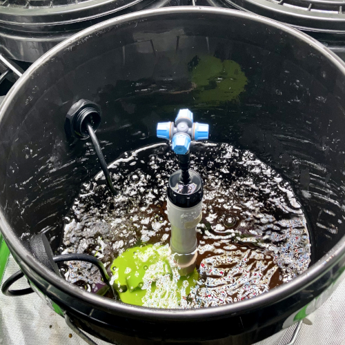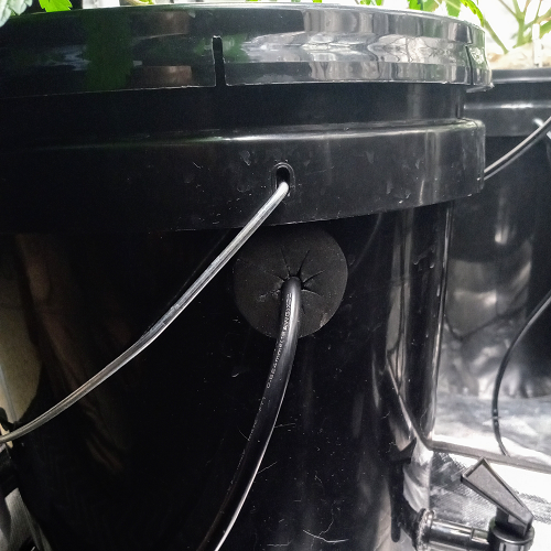 I got a couple of great ideas from cruising the internet. The first was using the food safe sanitizer Star San to clean the buckets weekly. The other was adding a tap to check the pH without opening the bucket or putting anything into the solution. It also is set to let me know if the solution level is too low.