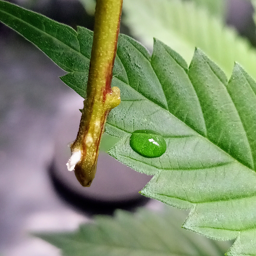 I shape my clones two different ways depending on how they will be used. Mother plants are used solely to create new clones while a few will be shaped for the vegetation stage. When I am ready to start the new clone I cut the stem from a mother plant using a sharp pair of scissors sterilized in alcohol and trim off all but the top 2-3 leaves. I cut the lower end of the stem about 3/4 inch below the last node while underwater. I place the stem in the tap water for 10 to 20 minutes to remove any oxygen trapped in the end which will cause the plant to wilt and possibly die.