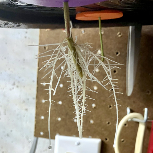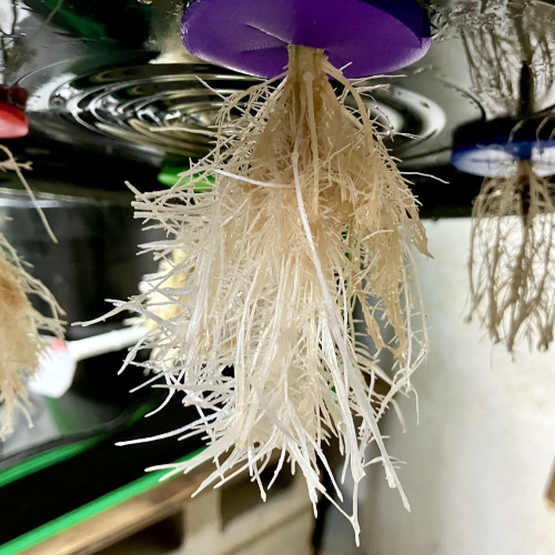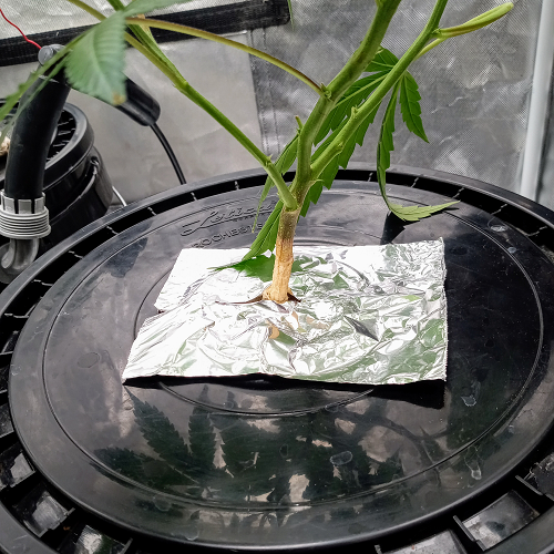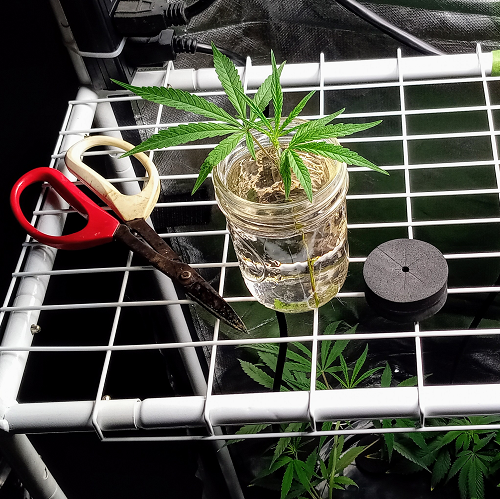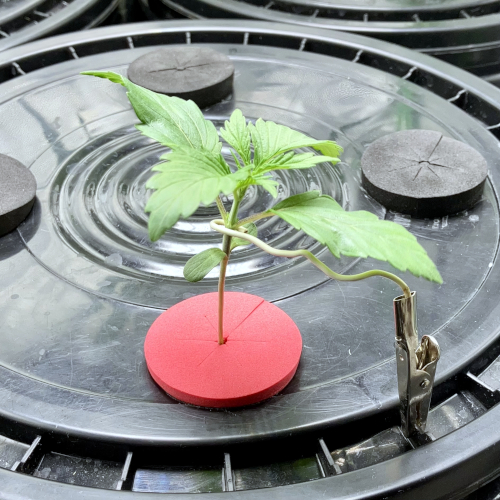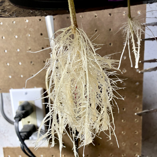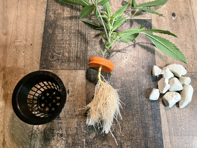 To prepare clones for the vegetation stage I place them a little closer to the light and trim the roots daily. A few days before moving to the vegetation buckets I trim the roots to fit in a net pot without bending. The roots will take off the fastest if I don’t trim them for two days before moving to a bucket.