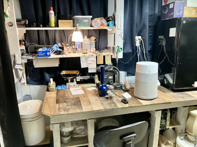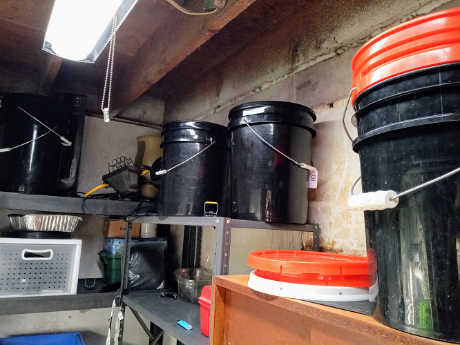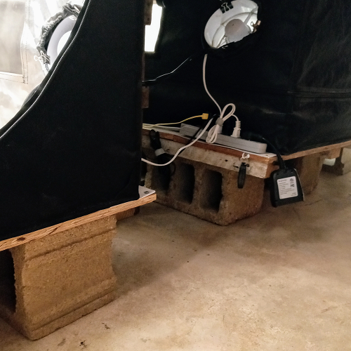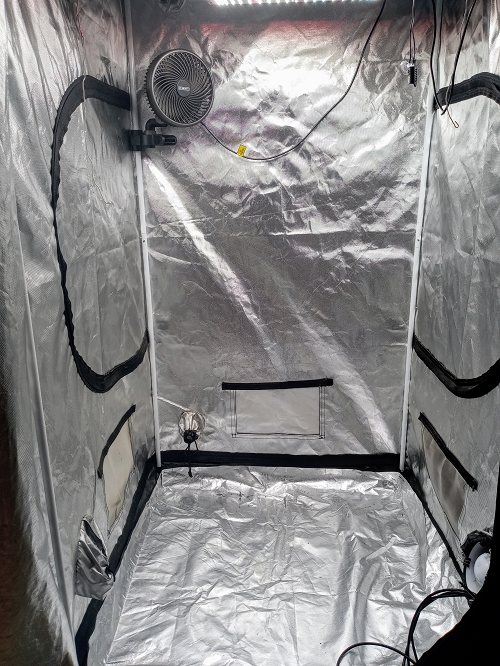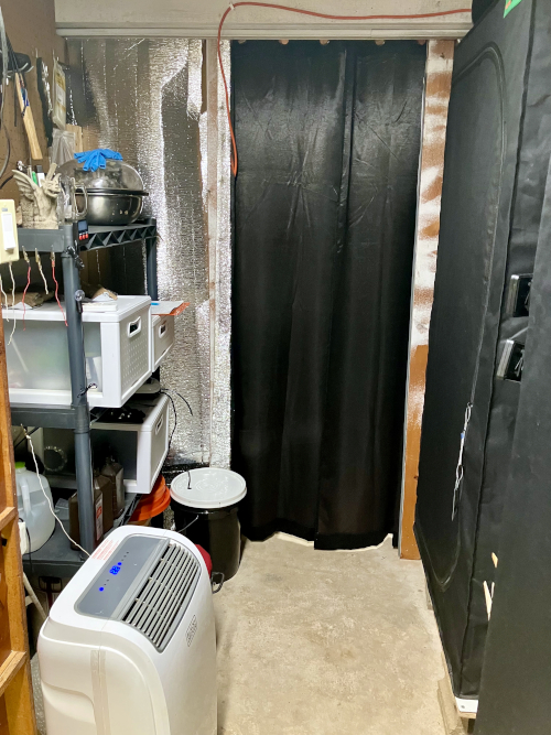 I have set the tents up in a the back of the basement. Lots of shelves and a cabinet for storage. Cool but humid, lots of fans going to keep air flowing. I ran ducts from the AC and air return into the room to help control the humidity.