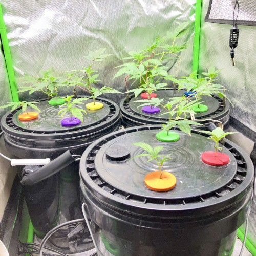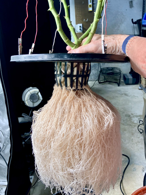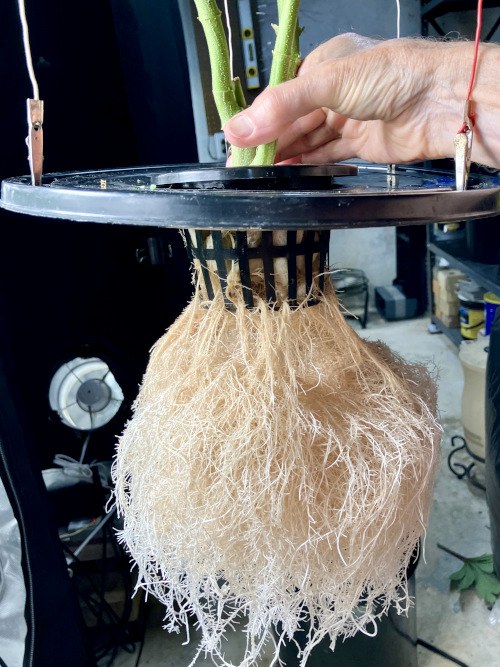 Good root development on clones now. I now use only 4x plants per bucket. Easier to line up the fogger jets with the plants to insure consistent coverage.