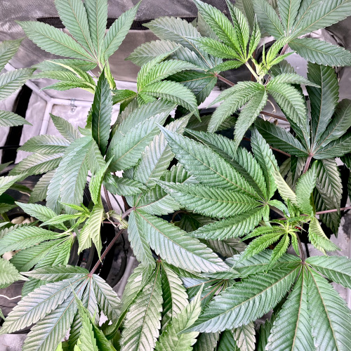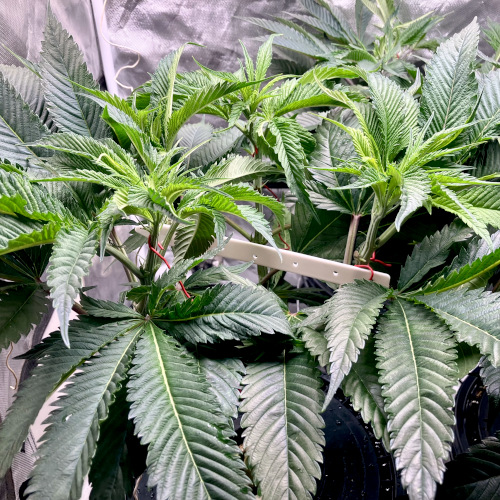 Mim has good internode spacing with some thinner fan leaves that need to be removed. Feeding at 25×70.