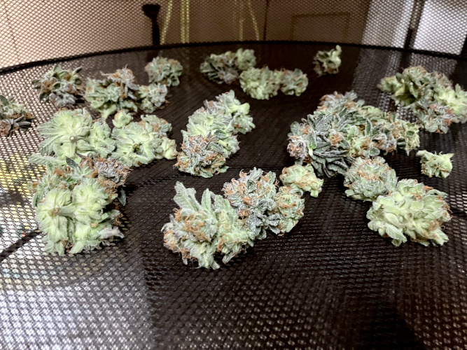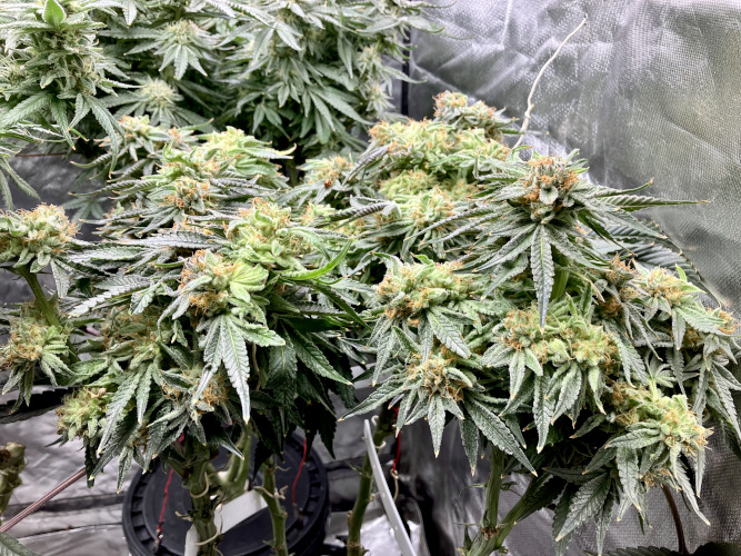 Getting ready to start cutting top flowers on the GFOG. Still getting new flowers on lower buds and some of the top colas.