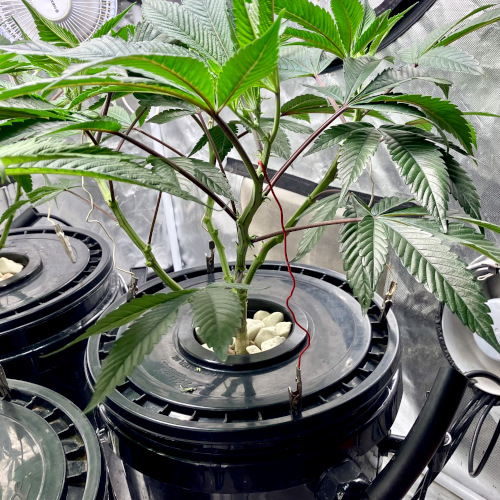New cycle. Two GT3 and a Gush mints. Good size and roots on all three. Broke 2 of the GM stems, very stiff. Plant is from seed and is growing fast.
