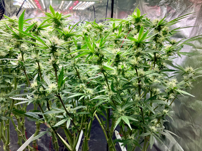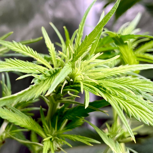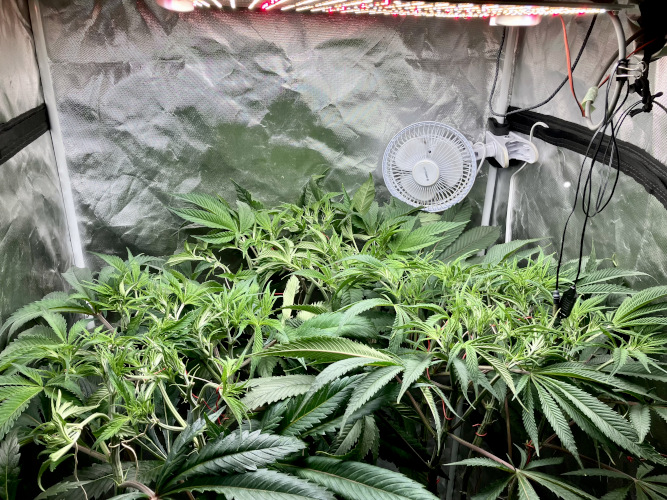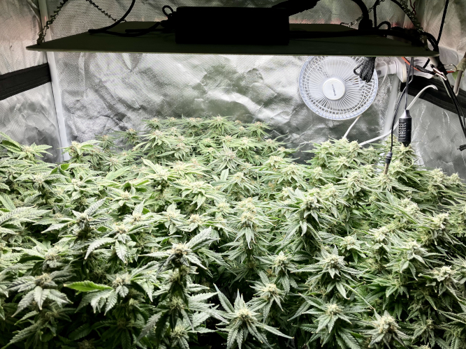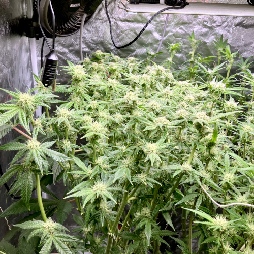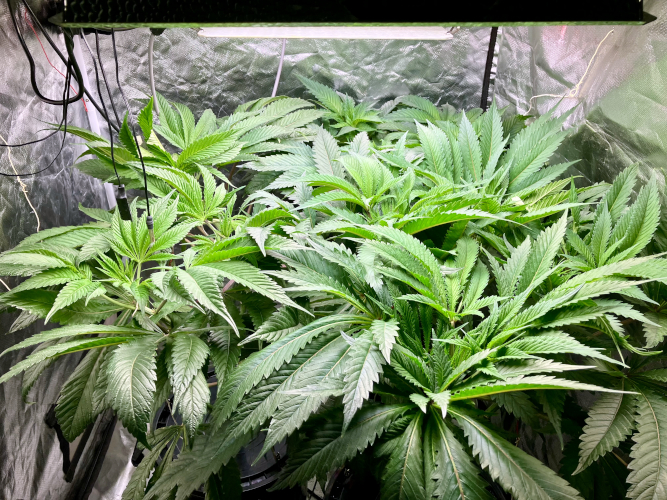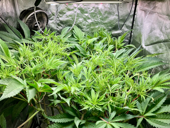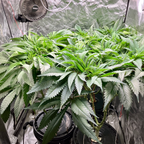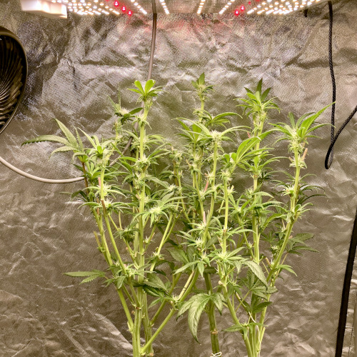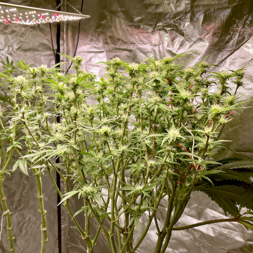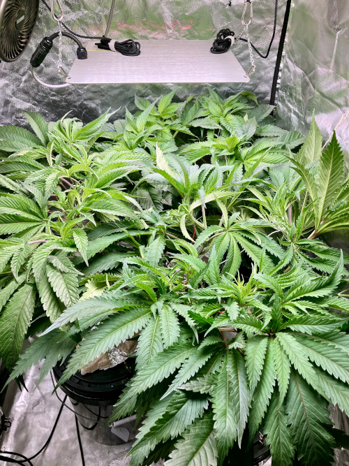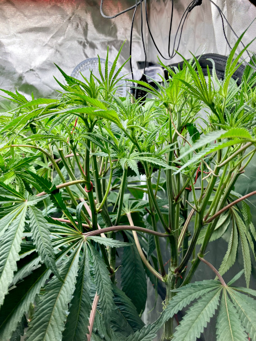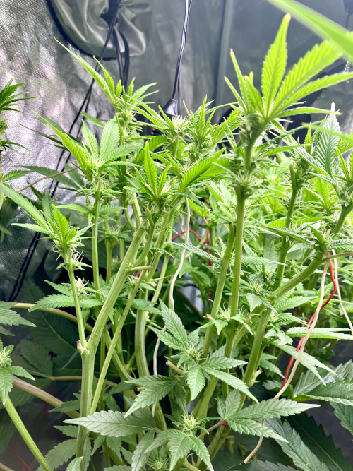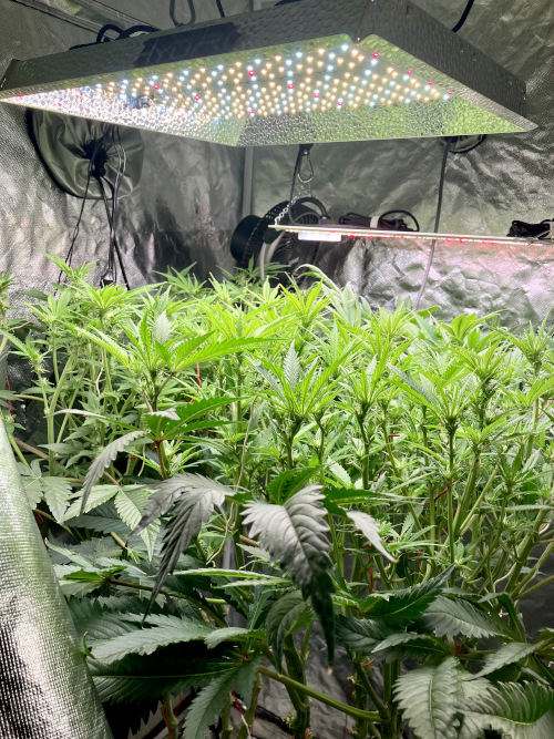 Lights to 100%, 10 and 14 inches above the plants. Letting side shoots grow. Keeping an eye on internode distance, trying to keep some distance to allow room for flowers to fill out.