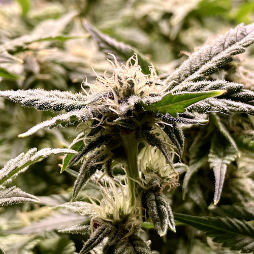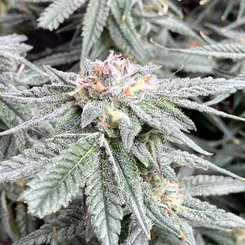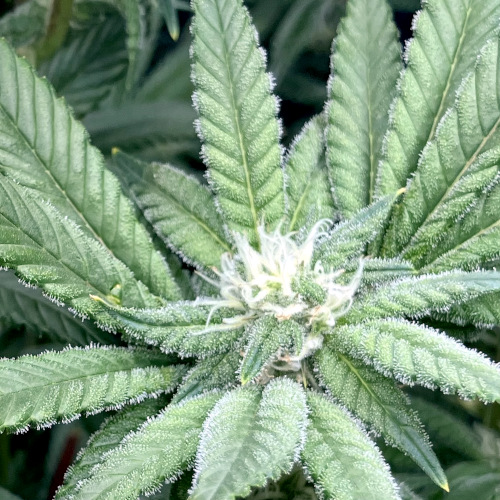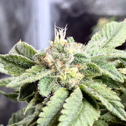Bk has lots of trichomes on leaves and flowers. GTH also has rapidly increasing trichome coverage. AOG fewer trichomes on nice flowers.