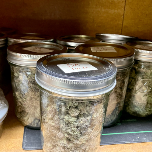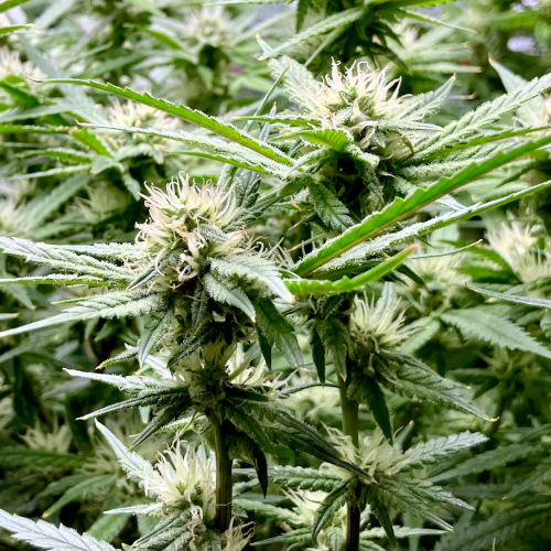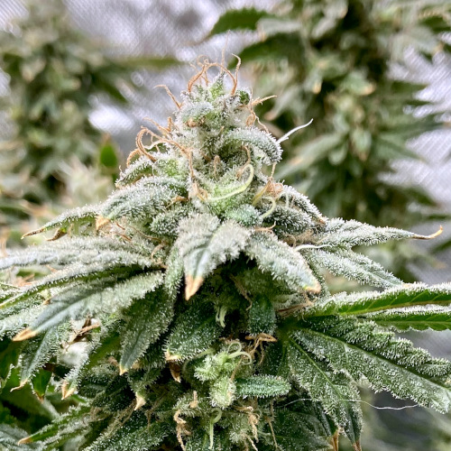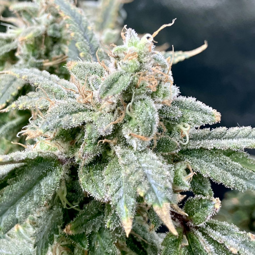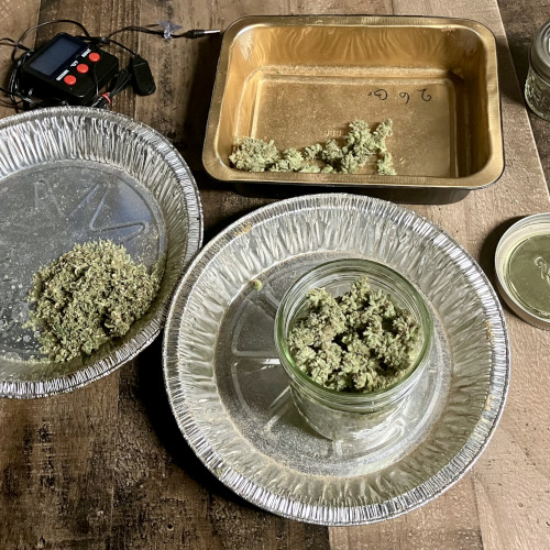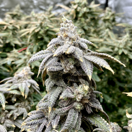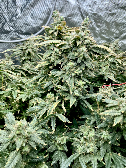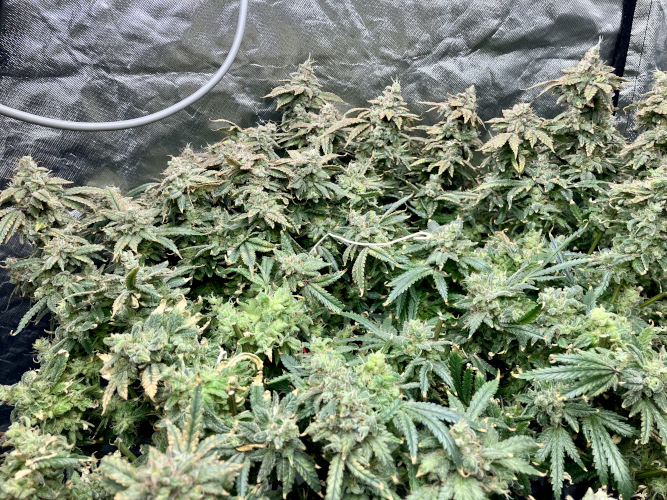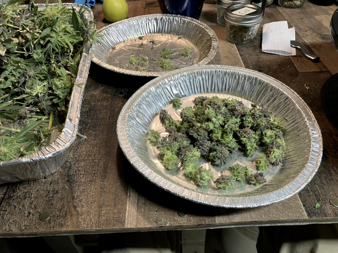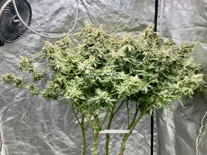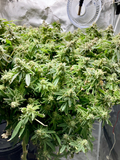 AOG harvest. Large fluffy buds, stacks. It was putting out some male flowers at the end. Getting some sporadic seeds on the BK.