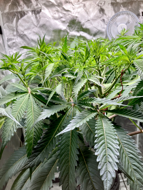 Keeping up with trimming the lower fan leaves on a daily basis. Alternating between trimming most of the larger fan leaves all over the plant. The next day I just cut the new fan leaves growing from the top / highest colas.
