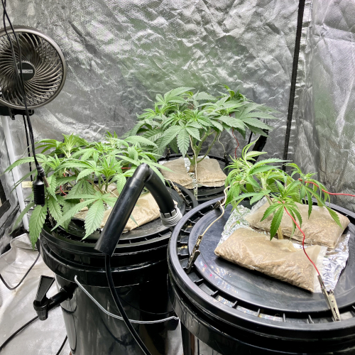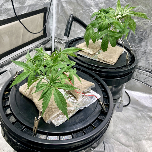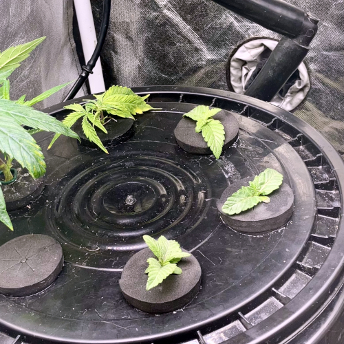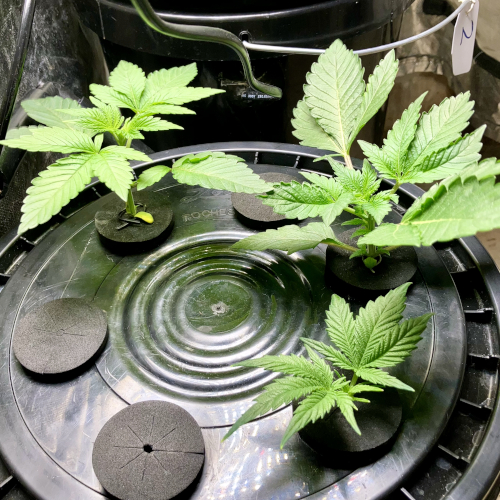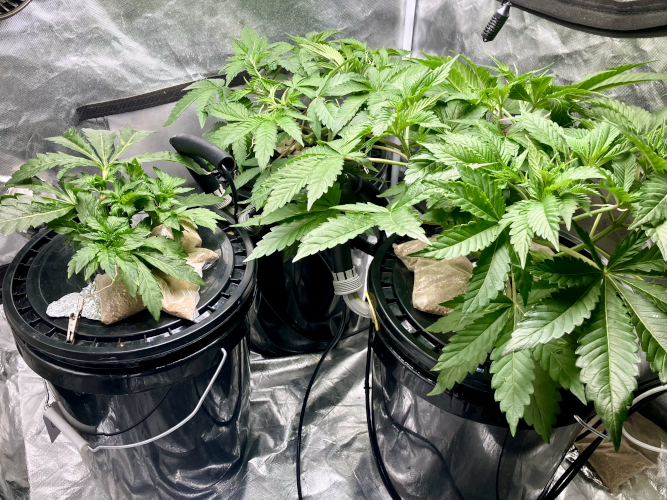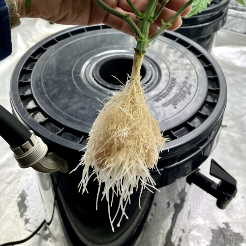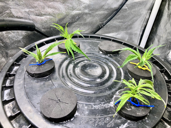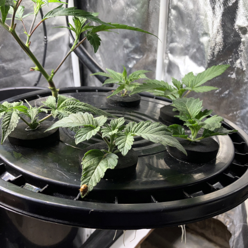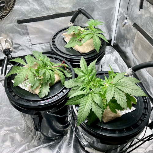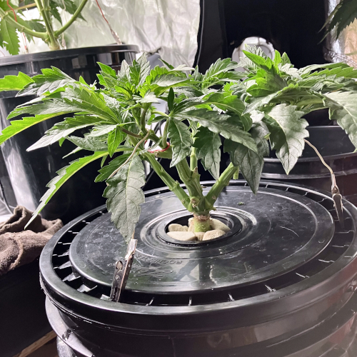 GM and BIS have 6 stems and one stem in the Aeroponic buckets, GM is growing a little faster than the BIS.