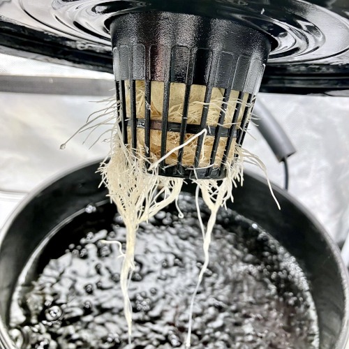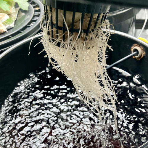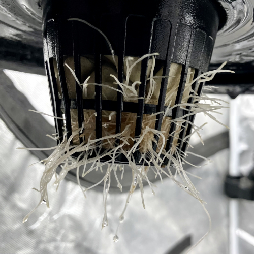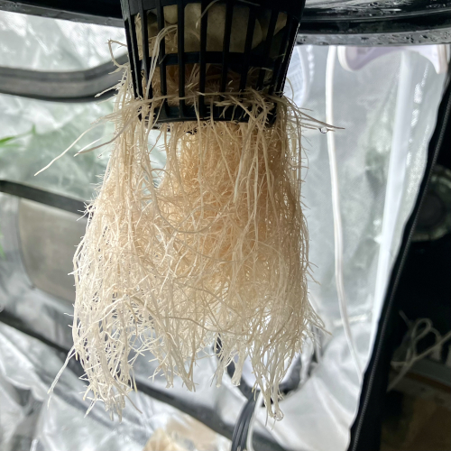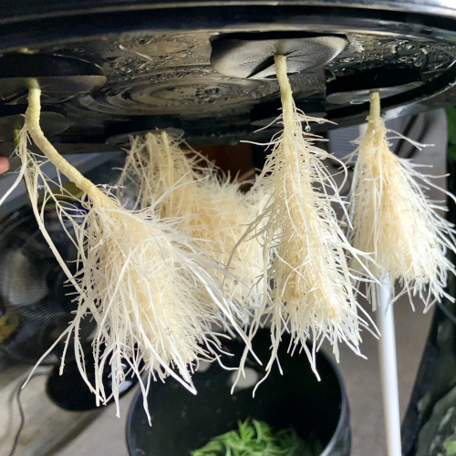 New root development in Gush Mints. Starting one day after set in net pot daily shots for 7 days then once a week.