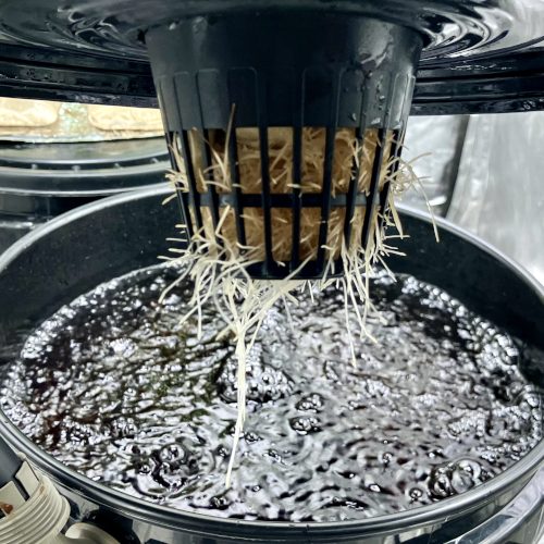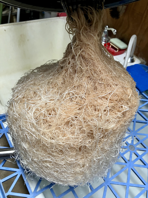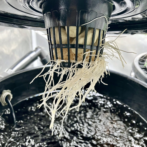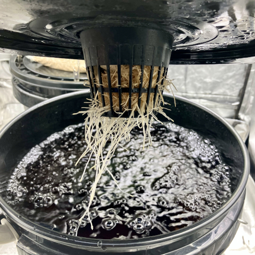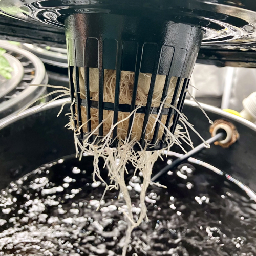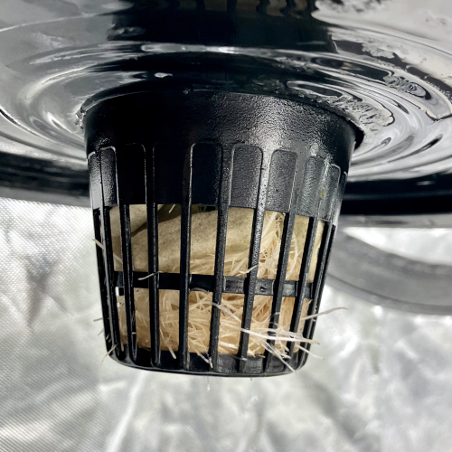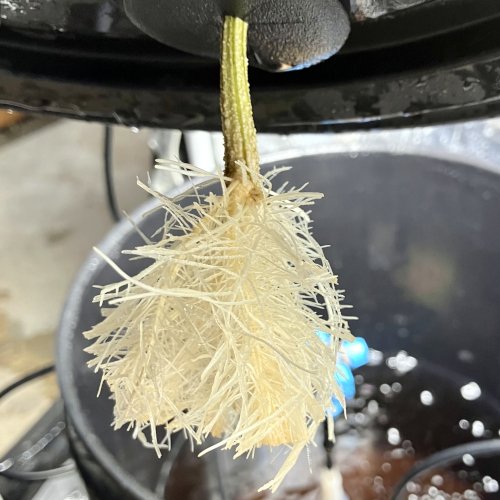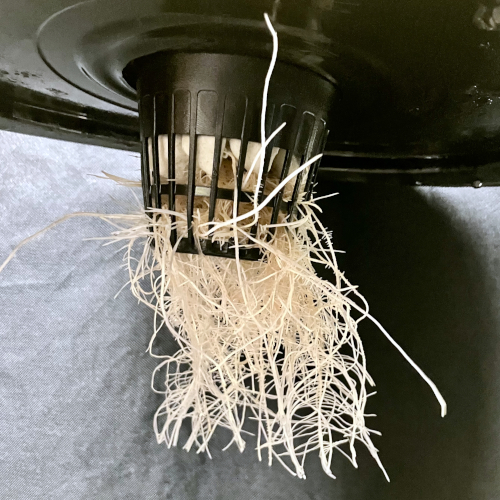 I had to trim the bottom of the BK because it was too big for the net pot. Trying to not trim roots for a couple of days before transplanting.