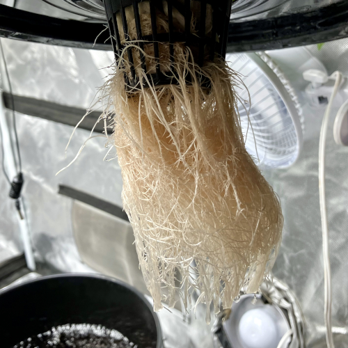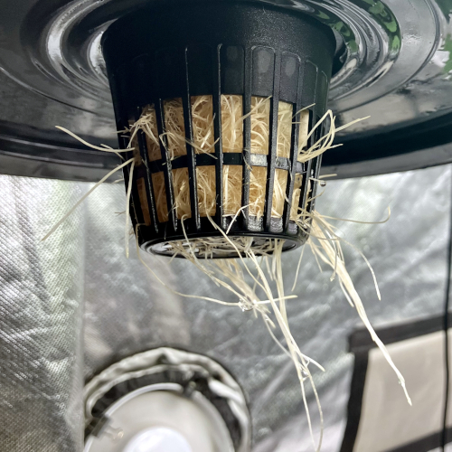 Keeping the root ball trimmed every day on GT3 A. Very fast root growth. Probably move to Bucket at end of week.