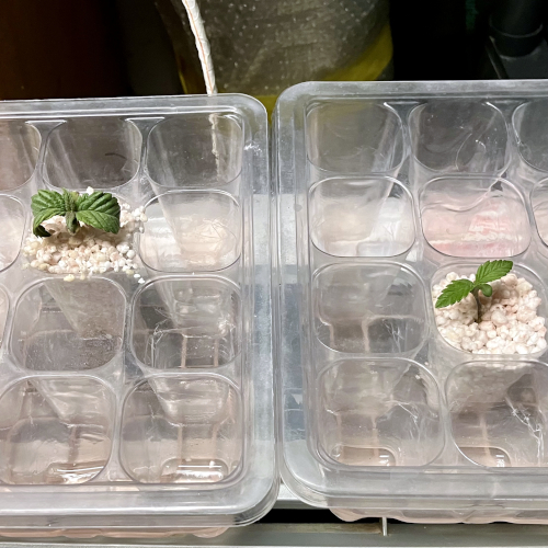 Rapid growth on the the 3 new strains. Keeping roots to less than 4 inches long.