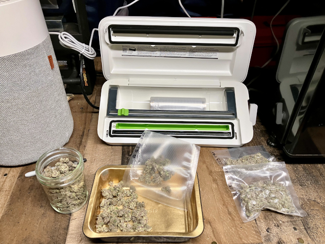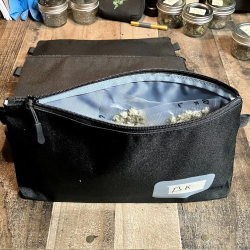 In order to maintain the potency of my flowers I use these canvas bags which do a good job of blocking the light. I can access each strain quickly without exposing any of the other strains to the light. They also have a couple of side pockets that are handy for separating the trim from the flowers.