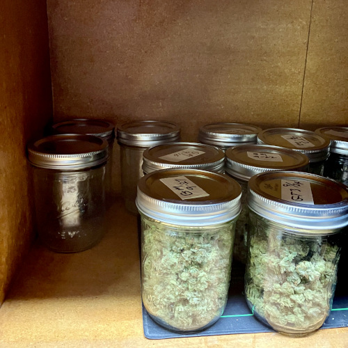 After the tops are dry I put them in sealed glass jars and store in a cool dark area. The flowers should be dry but not brittle when placed in the jars. They need some moisture to properly cure but will mold if too moist. After 10 days to a month, depending on the strain, the herb will cure and produce a smoother more flavorful smoke. The effectiveness of this varies with each strain.
